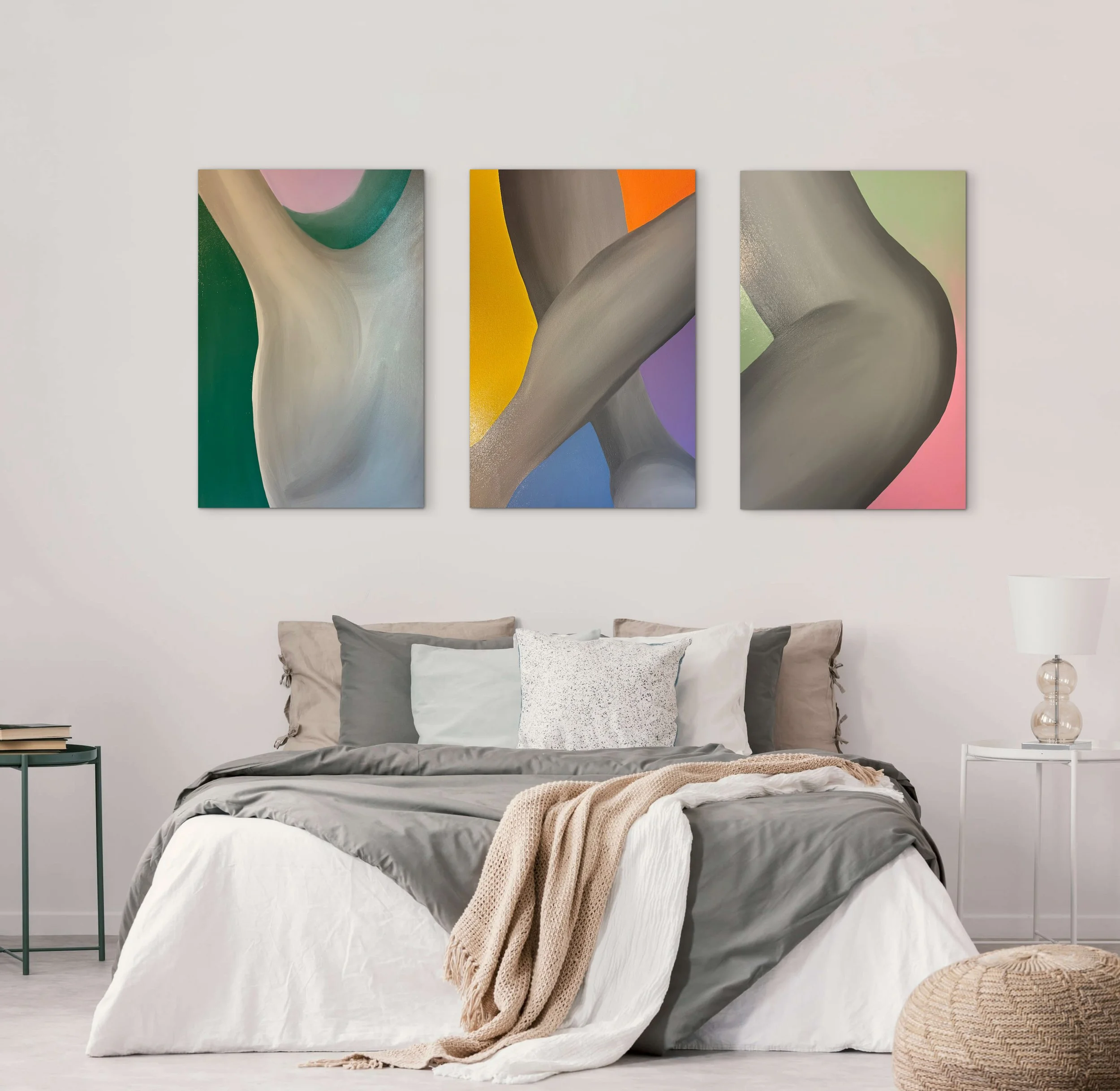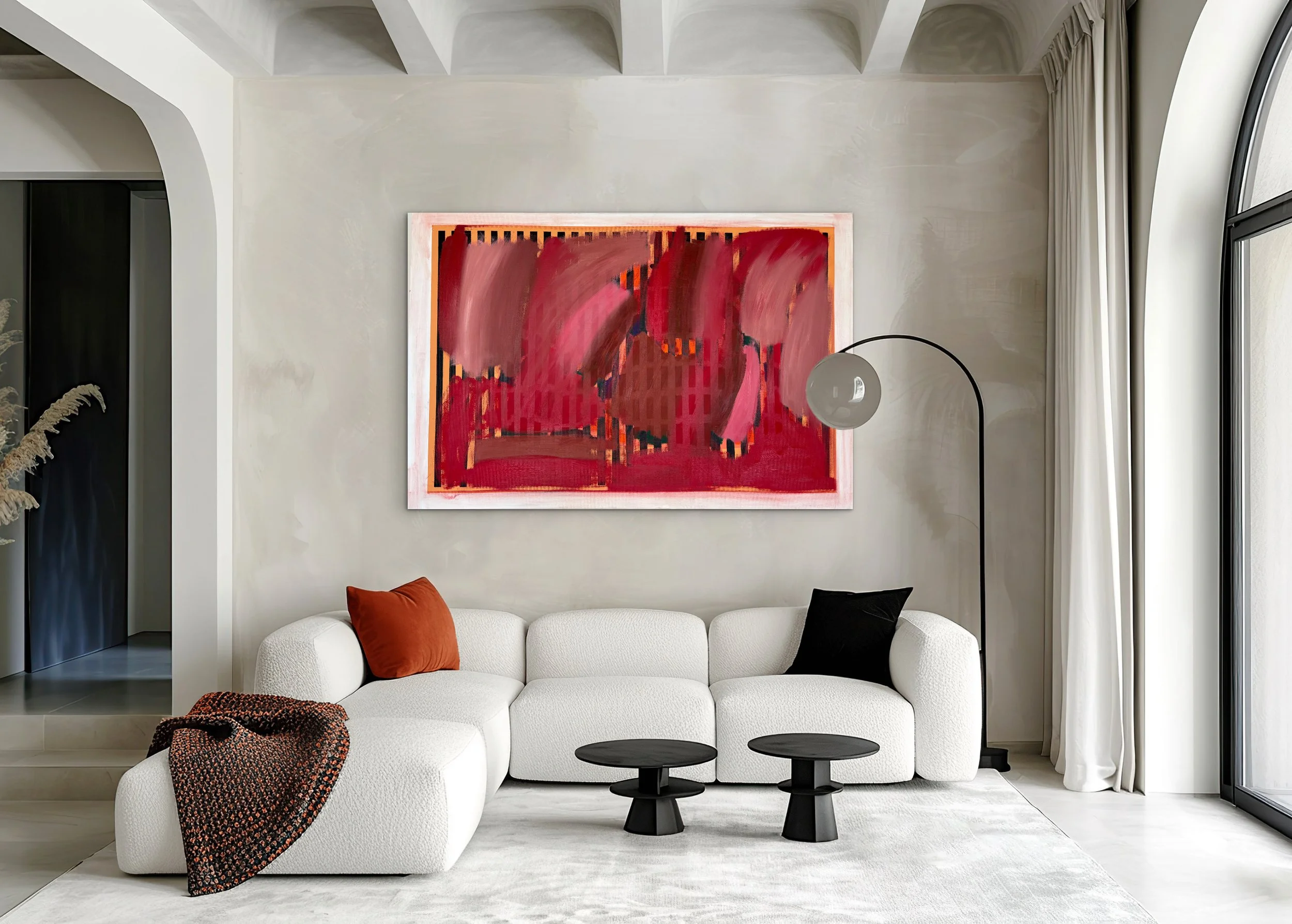 I also offer commissioned work tailored to your project’s specific needs. You can request custom dimensions, colors, and design elements, and I’ll provide a digital mock-up before beginning the painting. Commissions require a 50% deposit to get started.